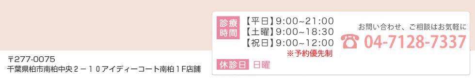 出勤前や仕事帰りにご利用頂けますのでお気軽にご相談下さい。